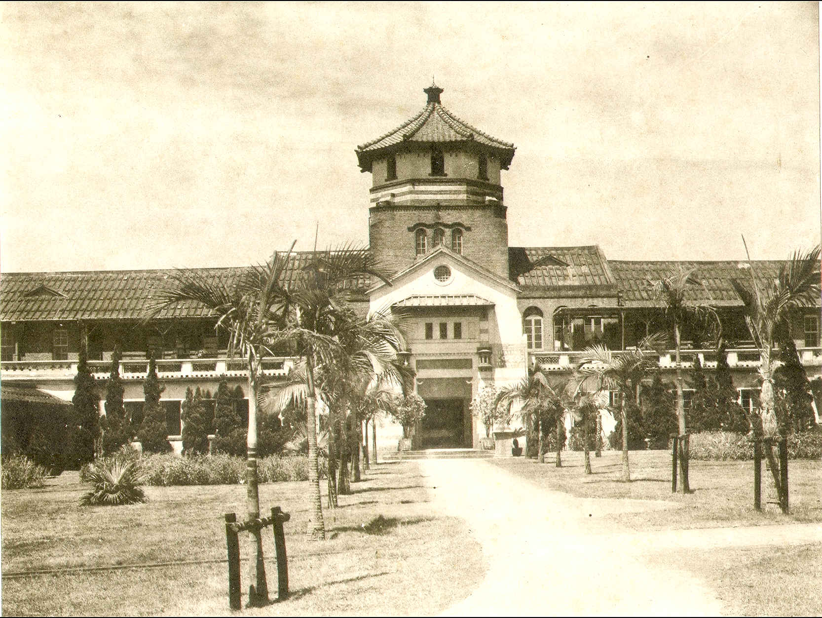 淡中自1914年創校於牛津學堂後,即提出建校計劃,於1919獲日本總督府許可為建校募款。建築的設計與監工是加拿大宣教士的羅虔益先生所主持。