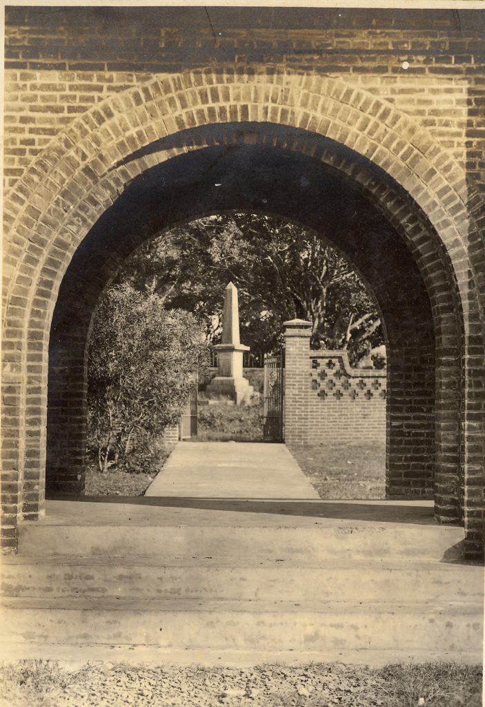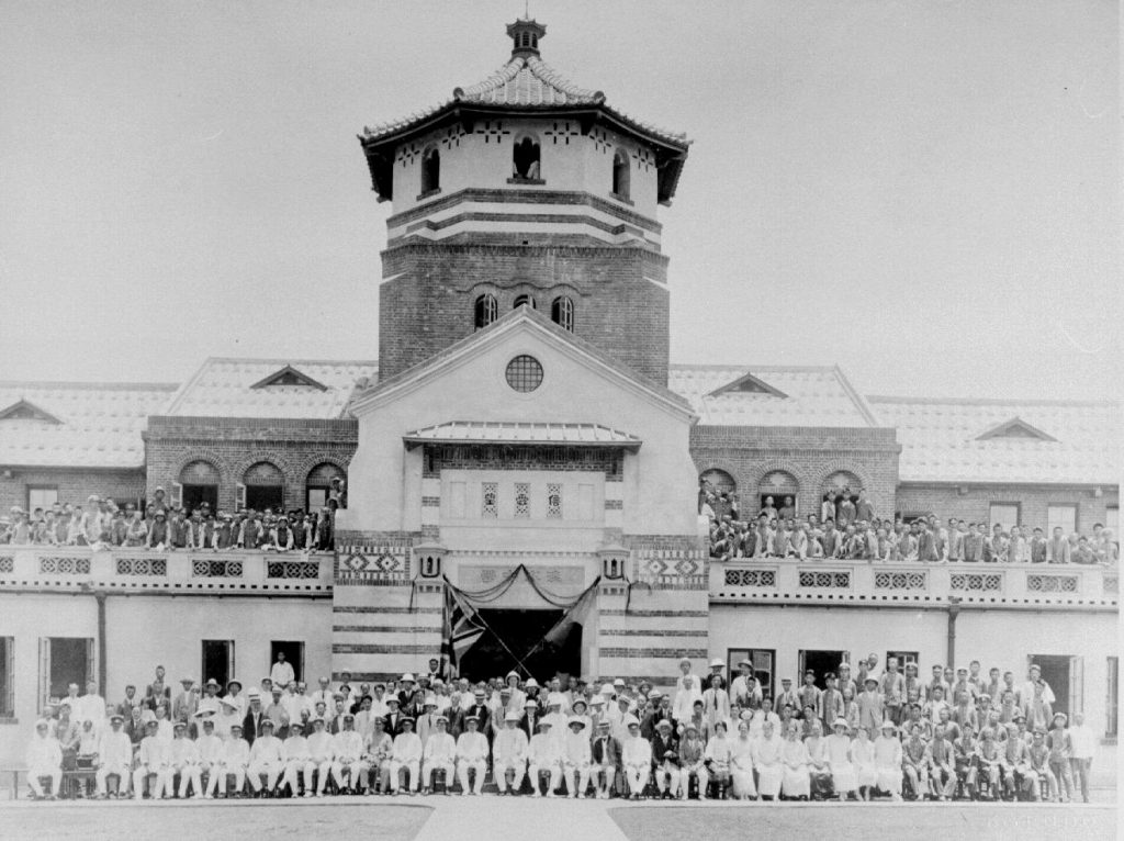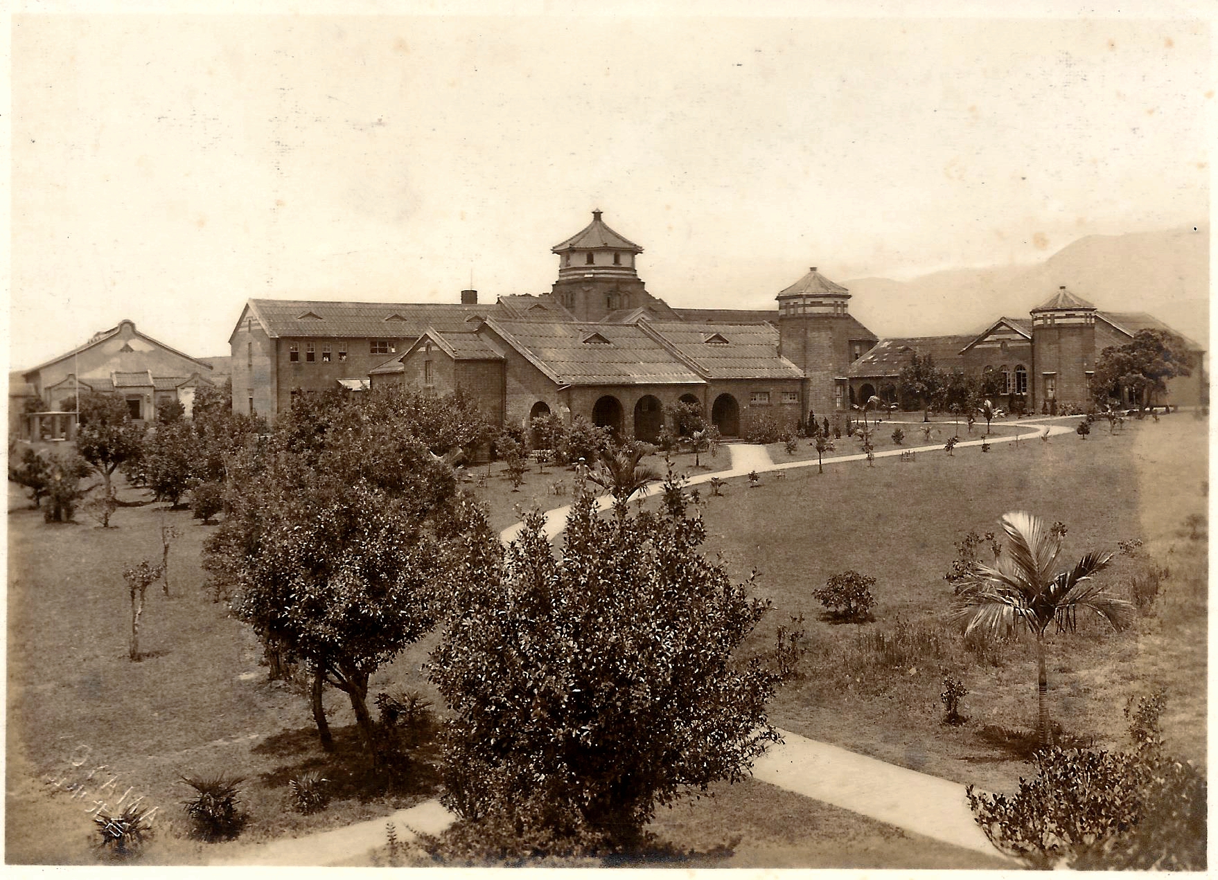 此外,八角塔還以一段美麗的過水廊連接體育館,其間以一古樸的紅磚拱門作為馬偕墓園的入口,構成一優美而整體性的校園。