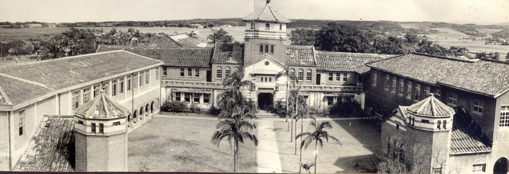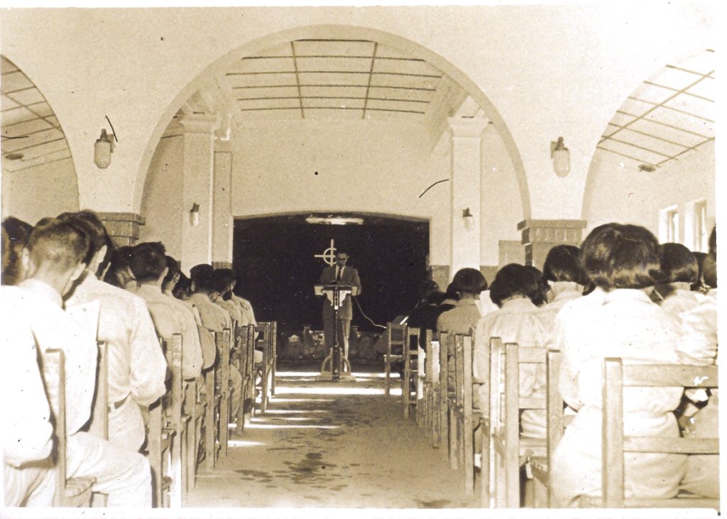 日本投降後淡中重歸長老教會,淡卻得因應新法令再度改名,1955年一塊「台北縣私立淡江中學」的木扁掛在不能再雕的舊淡中校名上,兩年後淡中男女兩校合併,八角塔成了38度線,將校園分為男生部、女生部。而女校的「愛與服務」卻取代了「信望愛」成了淡江中學校訓。